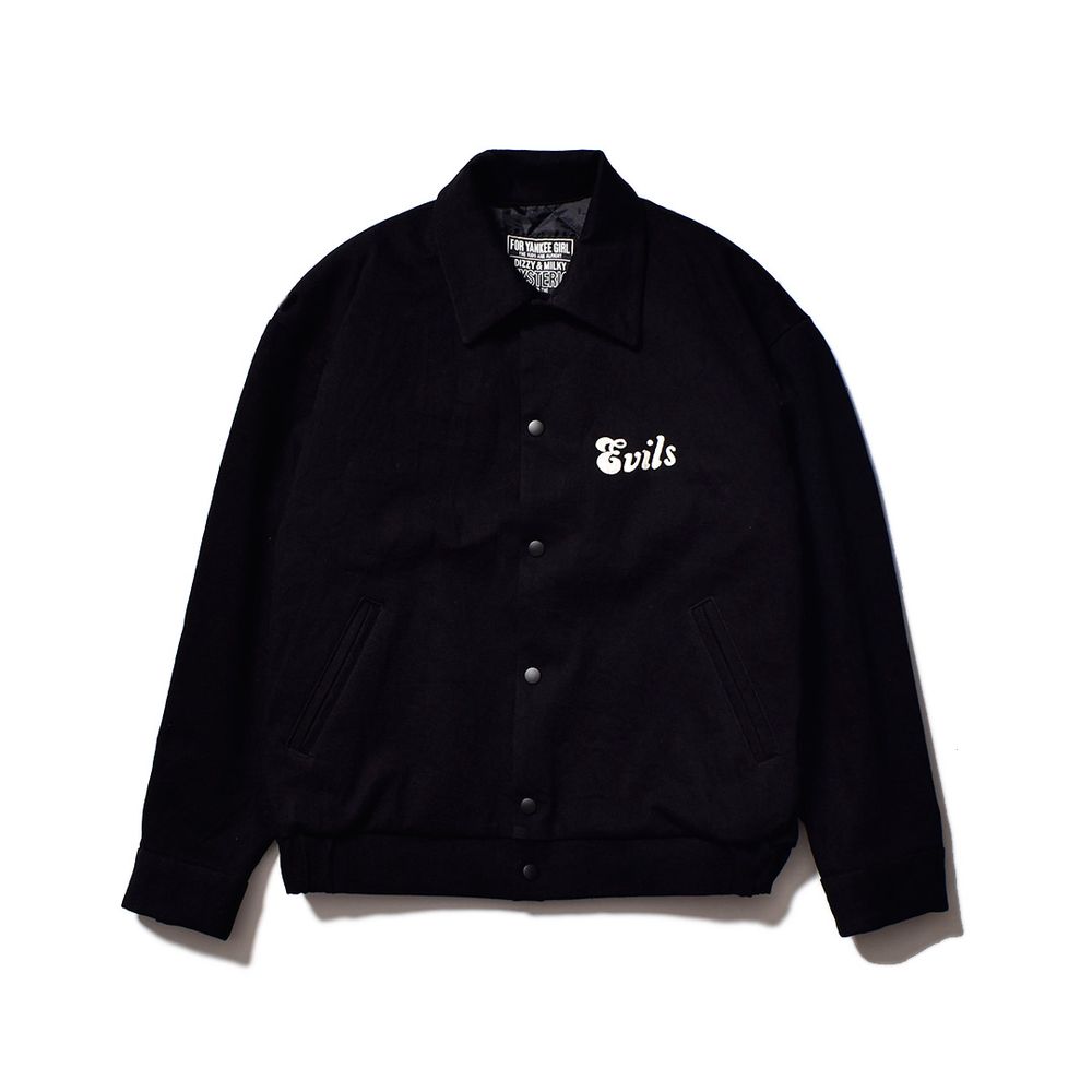 「Minedenim MOTEL」のスタッフジャケットをイメージしたこちらのアイテムは、50年代のスポーツジャケットをベースに、後身頃にモーテルのキャラクターであるDevilをモチーフにしたデザイン、前身頃にEvilsロゴを配置することで、全体的に不良感とMONDO感を表現した刺繍を施したデザイン。