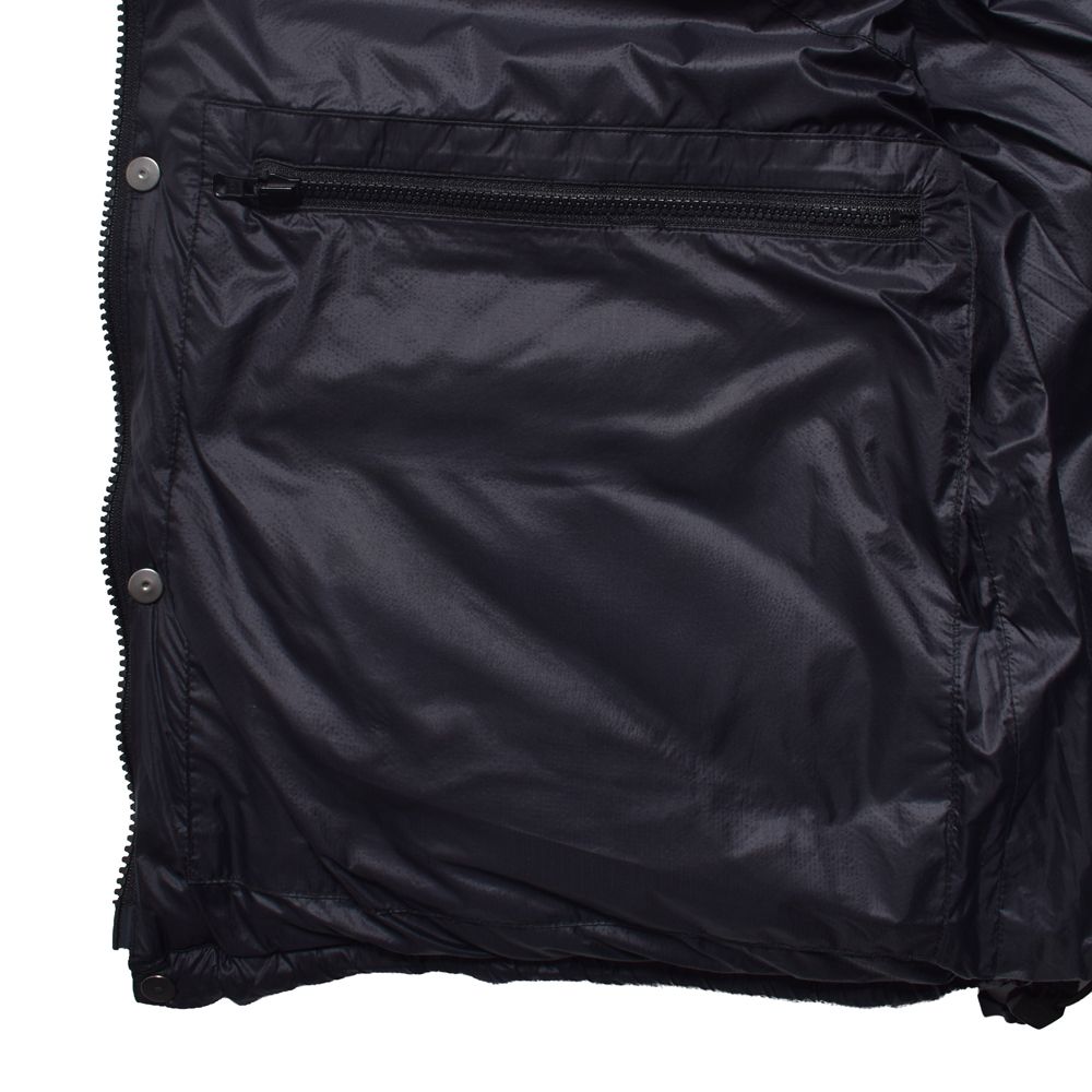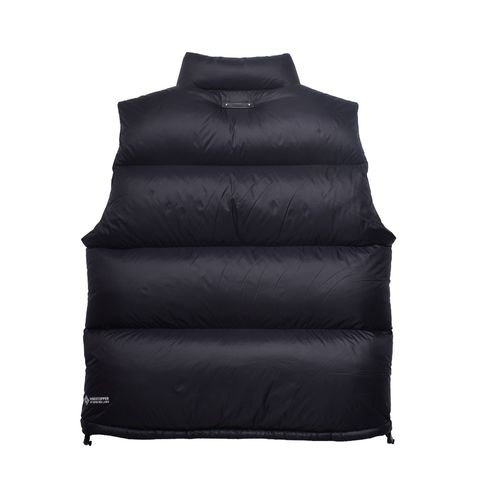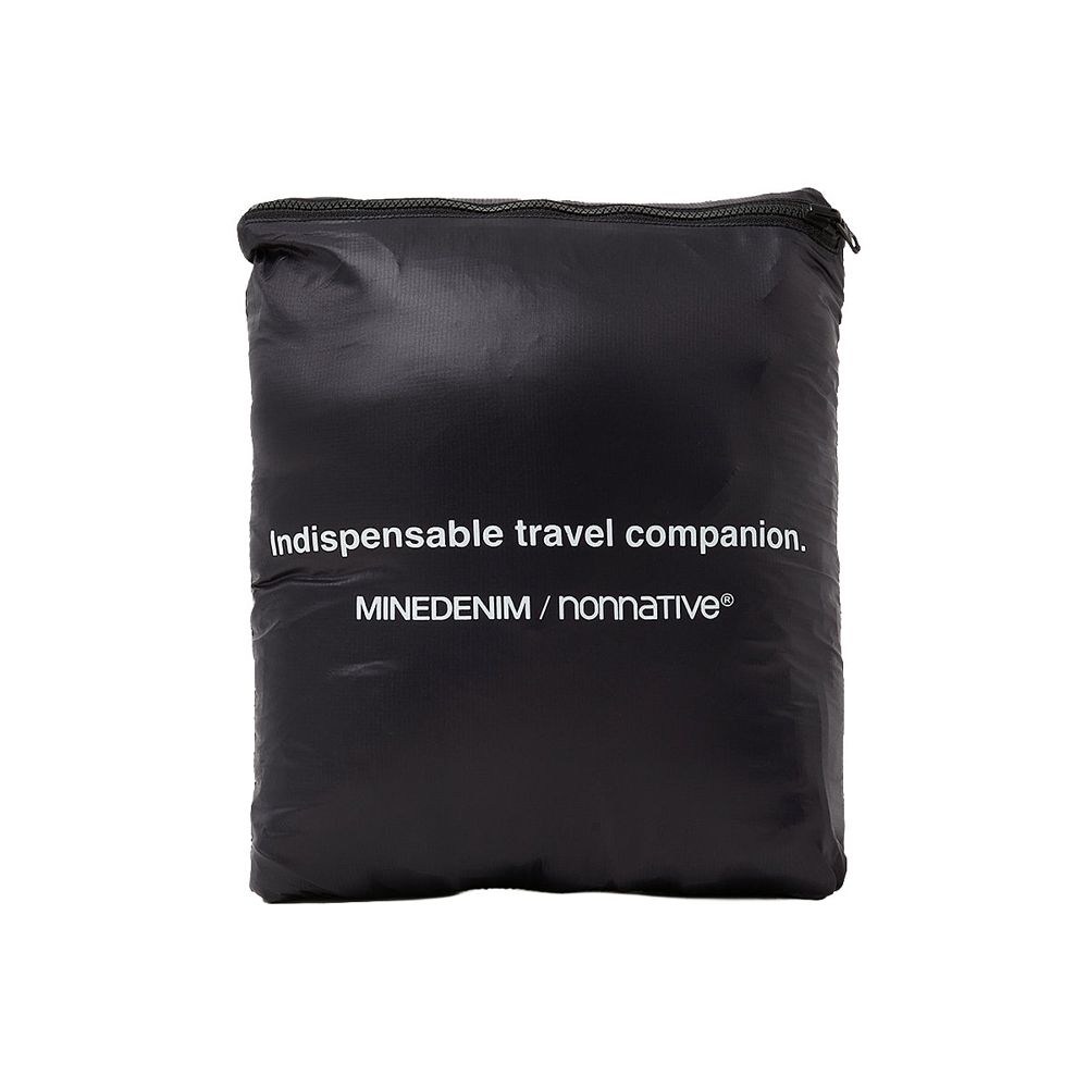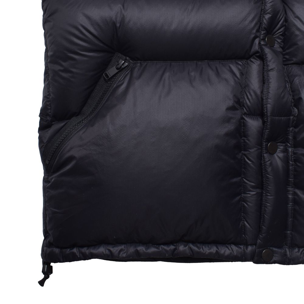 ハイボリュームながら薄手のナイロンリップ生地で軽い着心地に仕立てた「EXPLORER DOWN VEST」は、裏面に収納ポケットを追加してパッカブル仕様に。 トラベルシーンにおけるダウンベストの利便性にフォーカスし、携行したくなるベストへとアップデートしました。 〈MINEDENIM〉のフィロソフィを反映したオールブラックのカラーリングで、首元の〈MINEDENIM〉レザータブがアクセントとなっています。