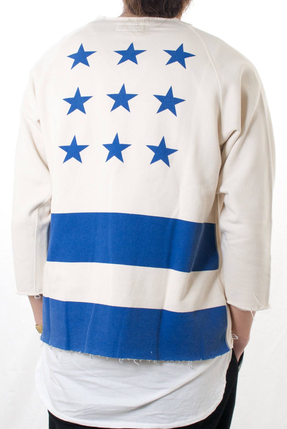 バックに星条旗をイメージしたグラフィックをプリント