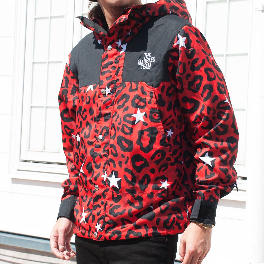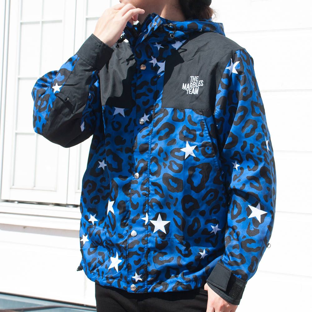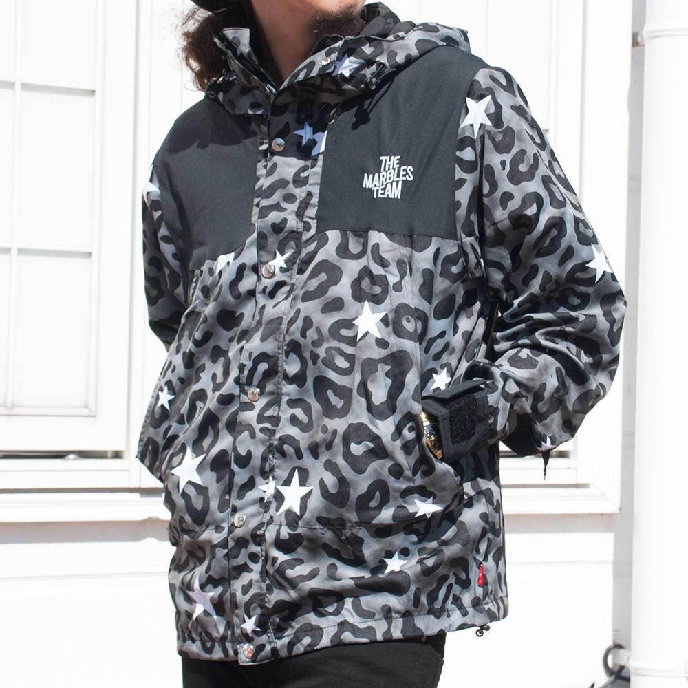 レオパード柄に星を入れたポップなカラーリングはアウトドアやフェスシーンで目を引くこと間違いなしの“Marbles”らしい仕上がりの1着です。