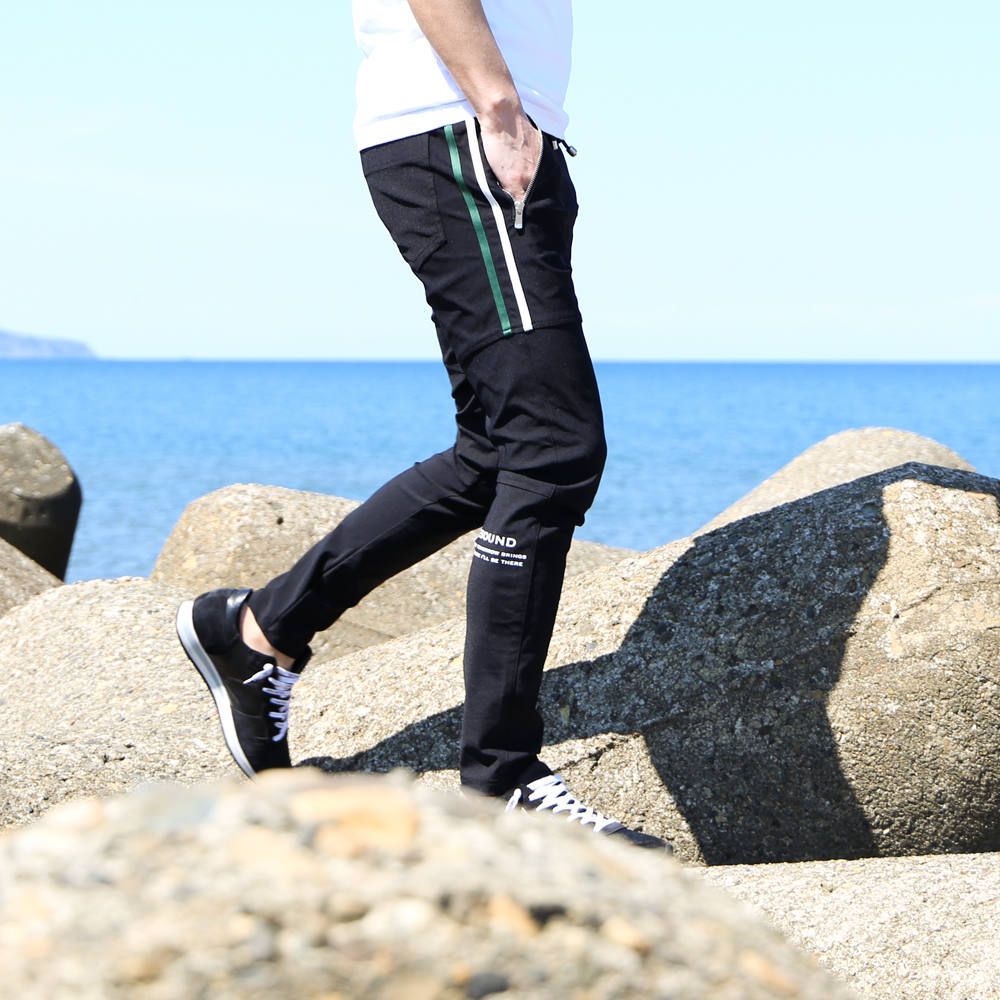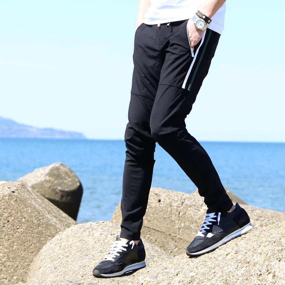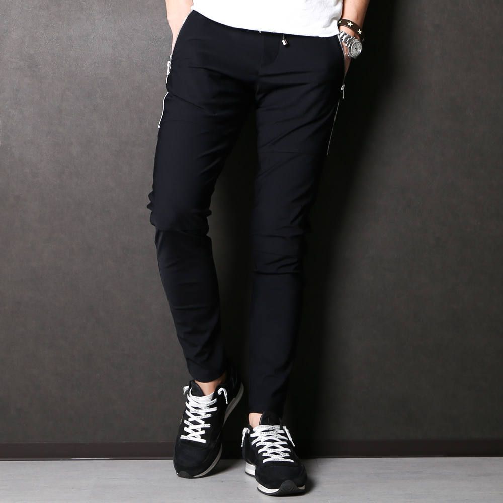 素材はハリがありながら驚くほど伸縮し、復元力も強く、しなやかな手触りの360°ストレッチ素材。コットンより軽く、そして速乾性を兼ね備えた高機能ナイロンマイクロファイバー。スウェット、ジャージ素材を合わせた高級感のあるハイブリット素材です。