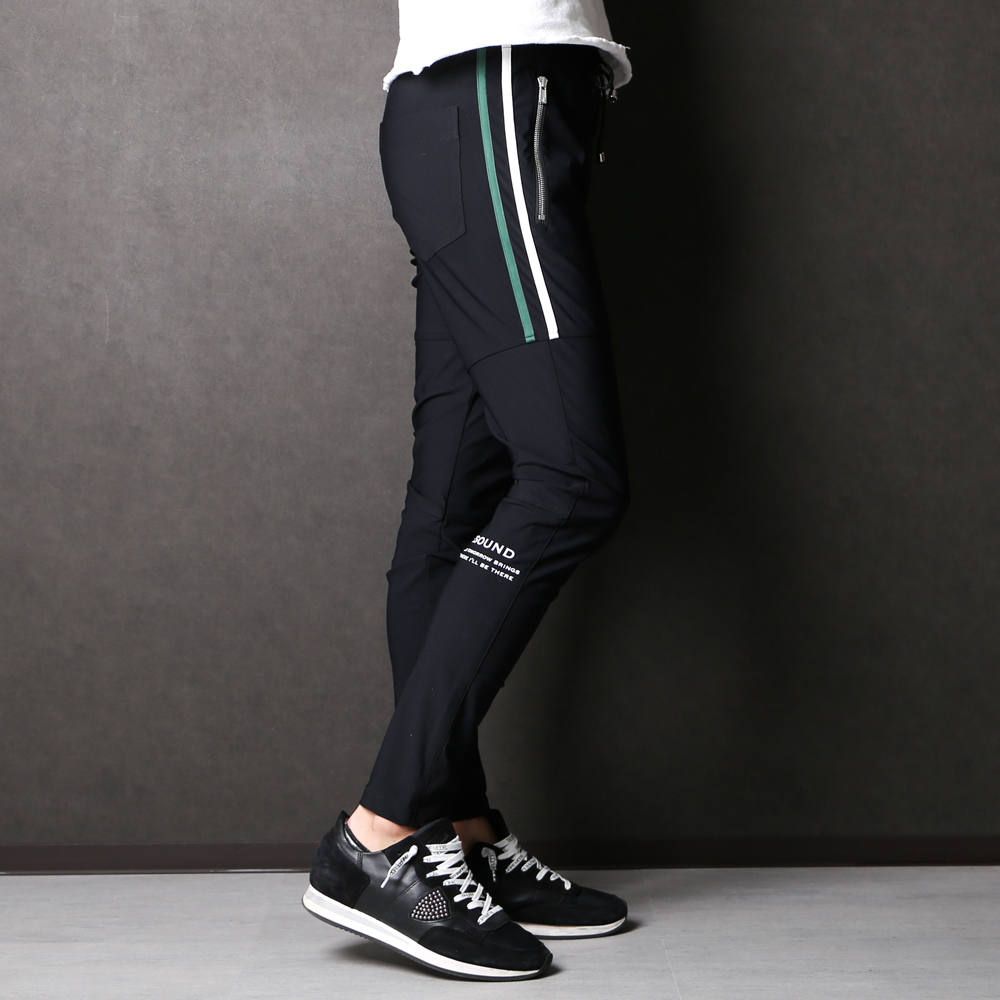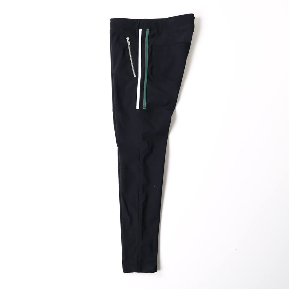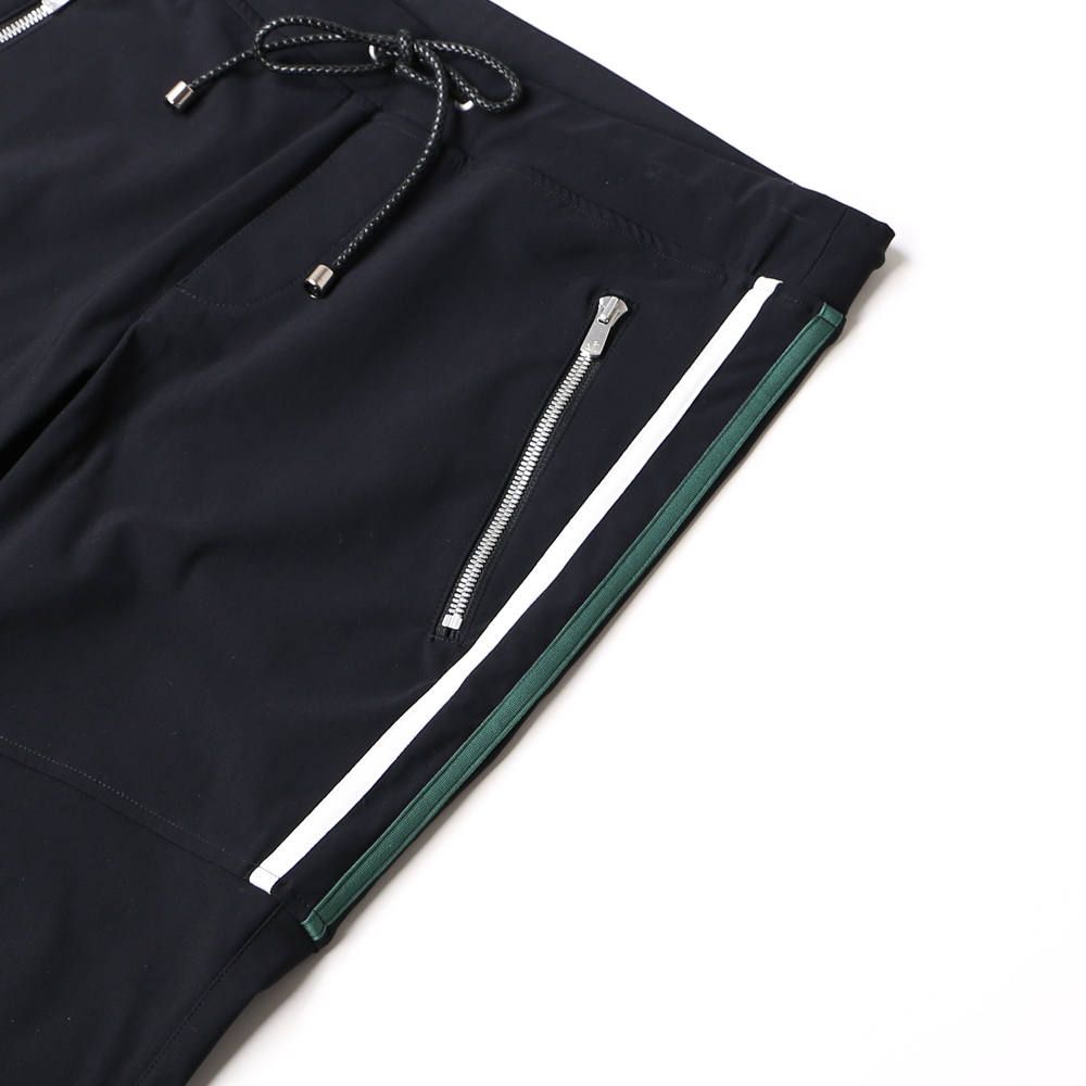8th COLLECTIONで、瞬く間に完売を記録した『Johnson LINE NYLON PT』をベースとした当店限定別注モデル。ホワイトとグリーンのコンビラインを膝上まで。右下腿にはオリジナルプリントを施し、スポーティーな印象にラグジュアリーさをプラスした特別な一本です。