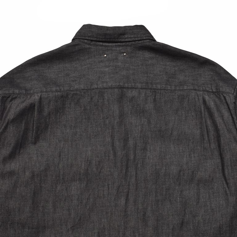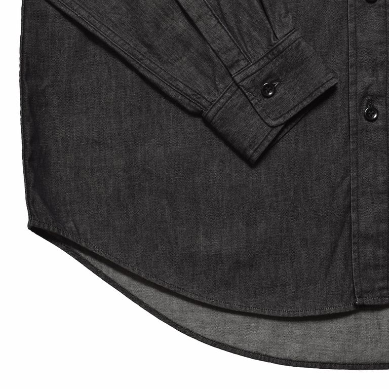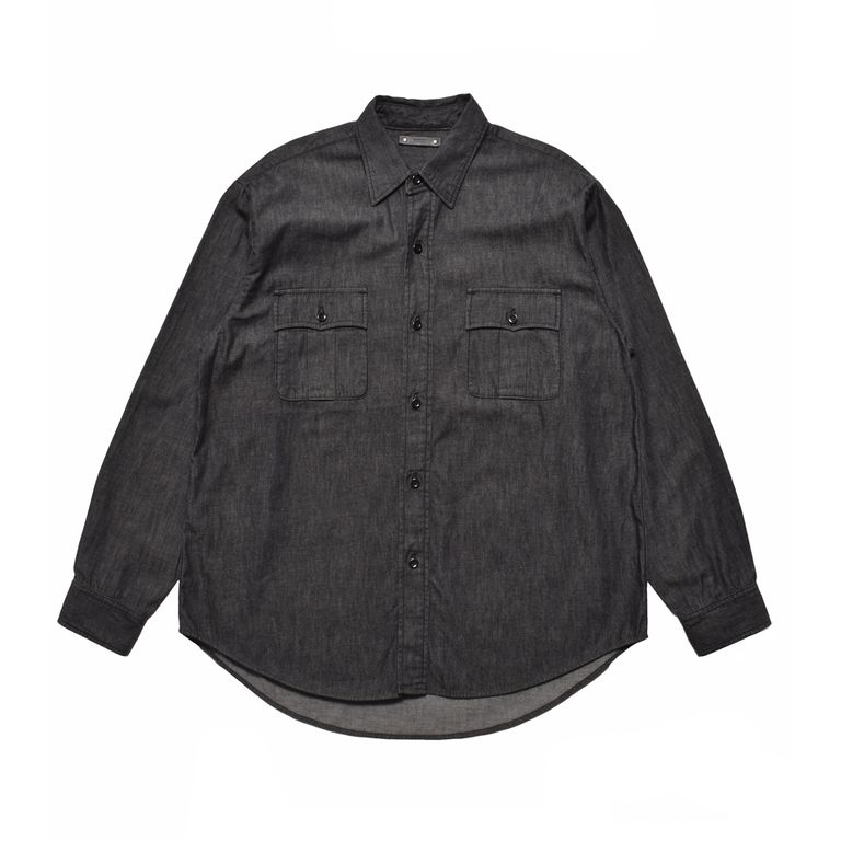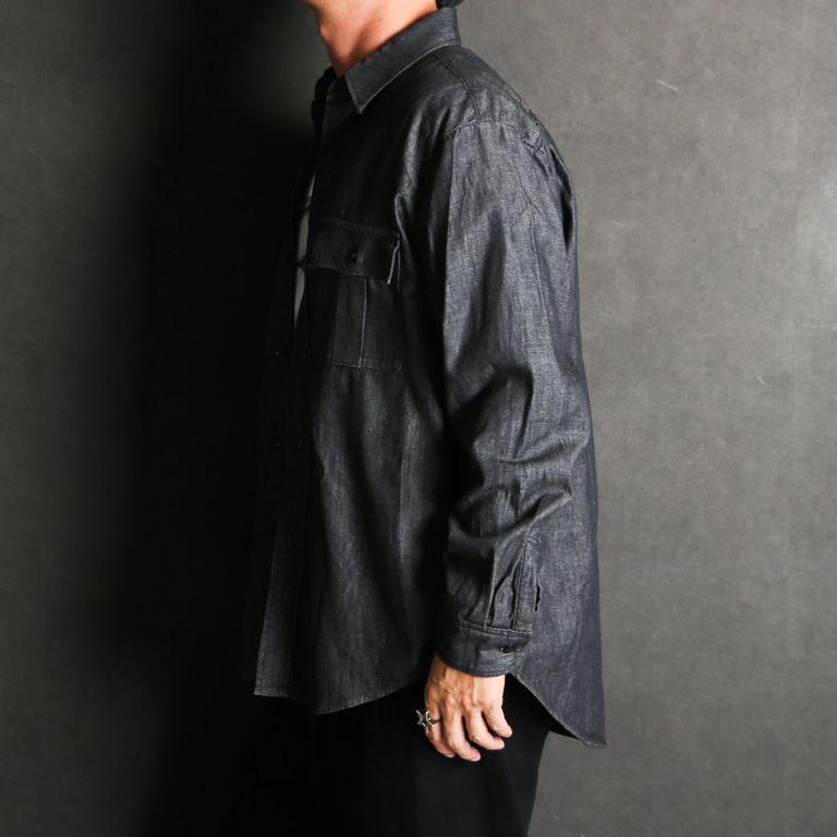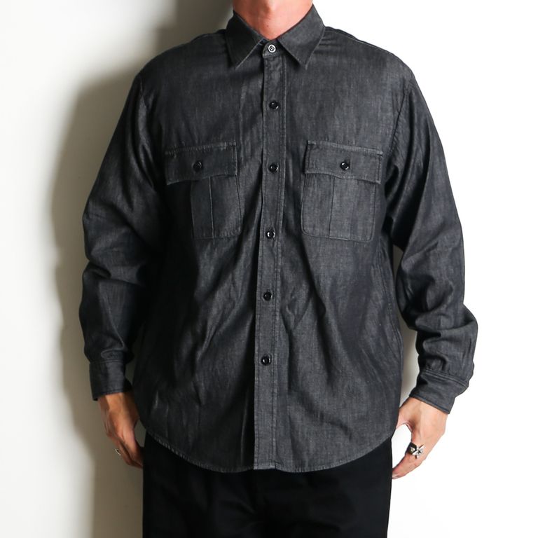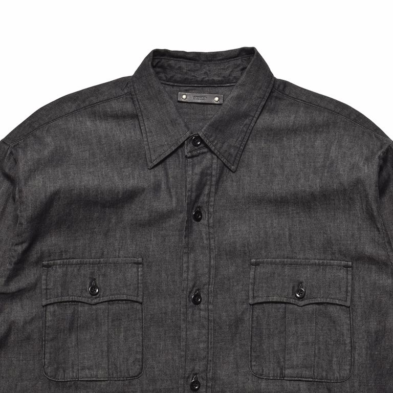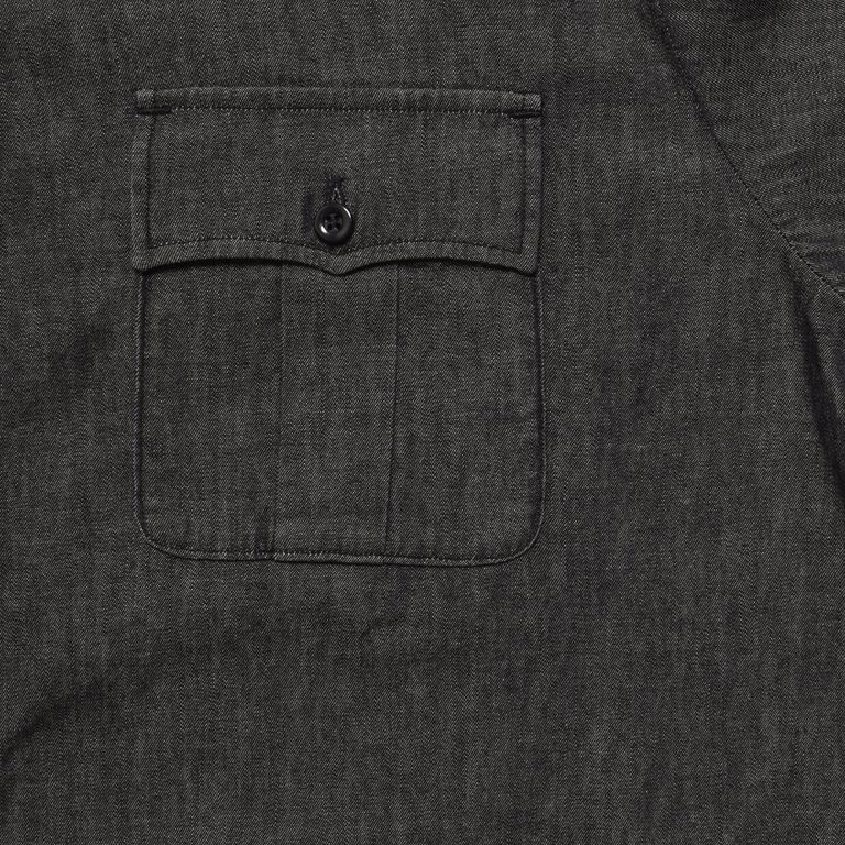 ミリタリーオフィサーシャツから着想を得て、現代的にアップデートしデニムシャツに落とし込んだ。