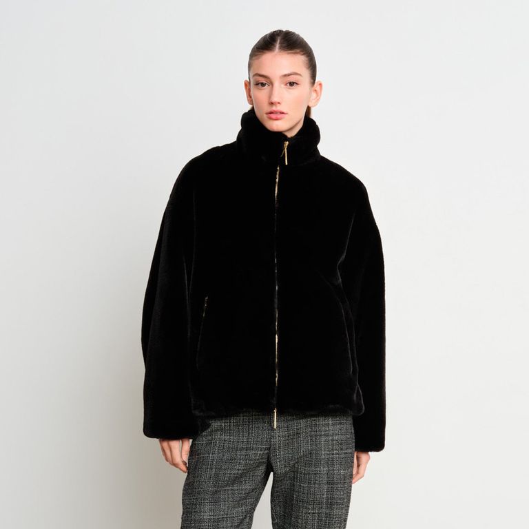 【レディース】 BARBRA バルブラ - BLACK / エコファー スタンドカラーブルゾン (フリース) / LJXA0038033588