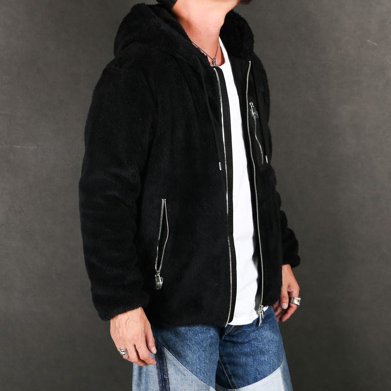 MENFI メンフィ - BLACK / ボア フードブルゾン (フリース) / MJXA0212033588