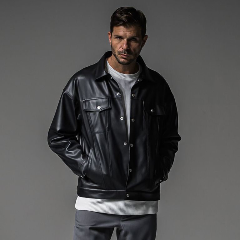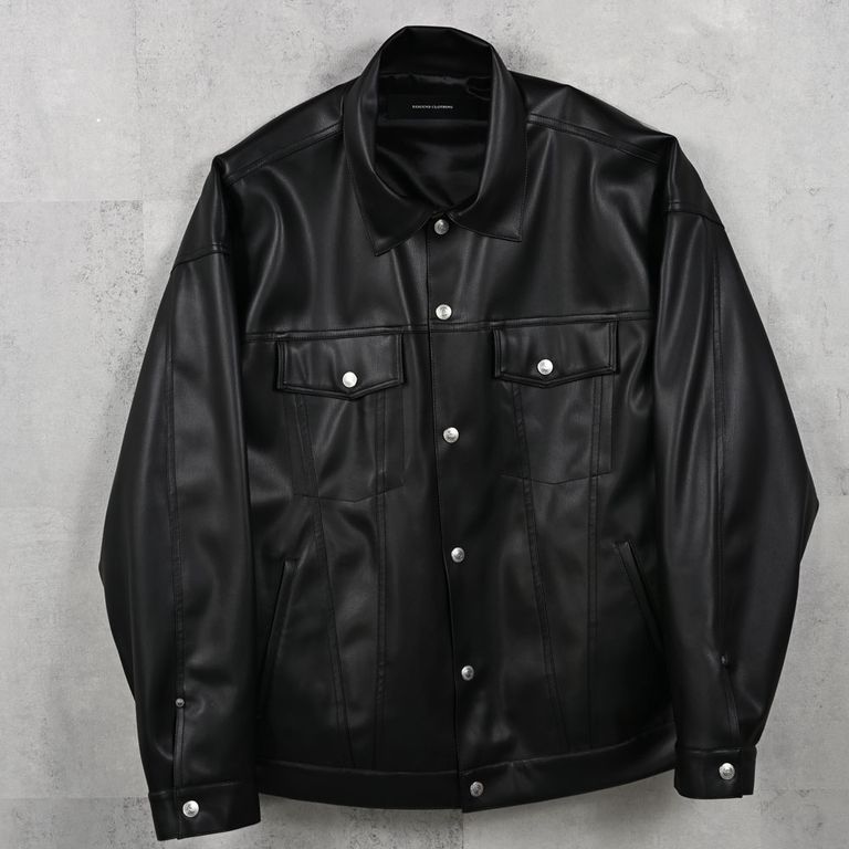 LEATHER OVER 3RD G - BLACK / エコレザージャケット / RC37-JK-006
