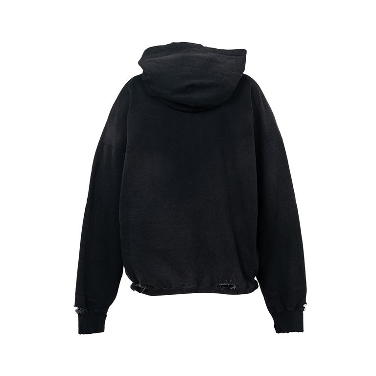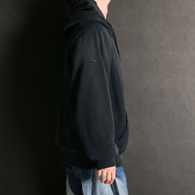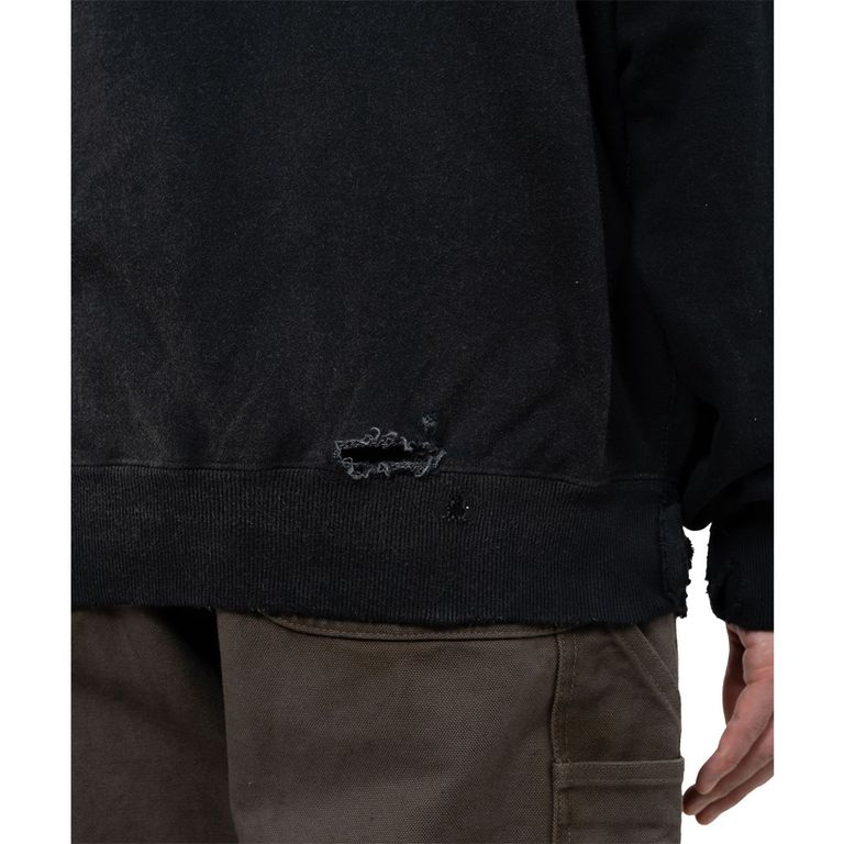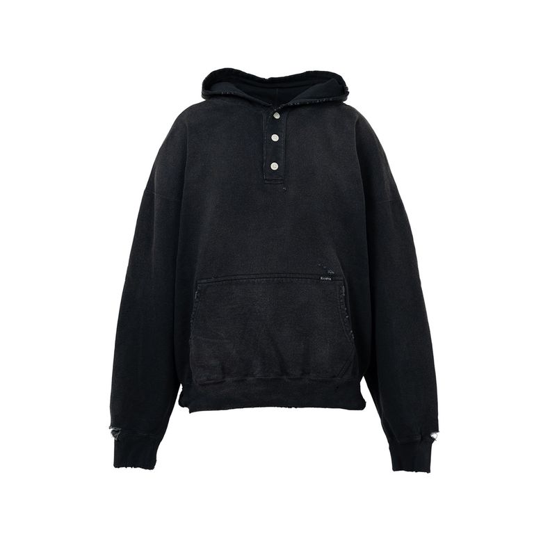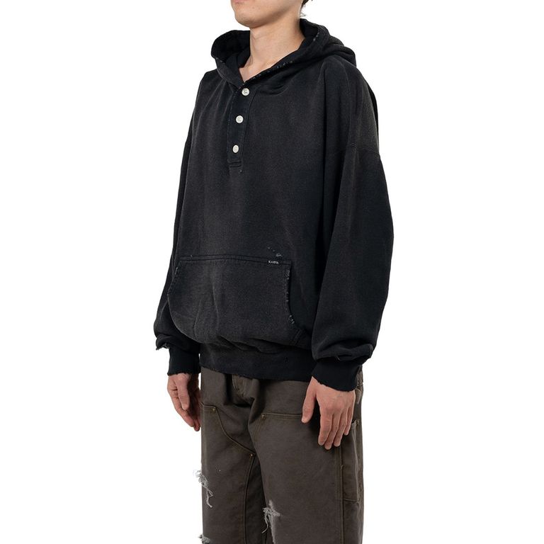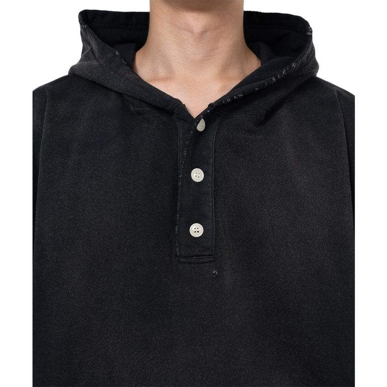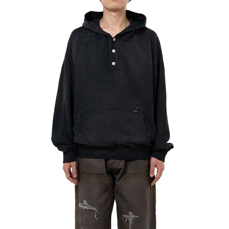 Distressed Henry Neck Hoodie - BLACK / ヘンリーネック フーディー / G15HD077