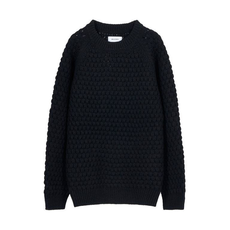 フィッシャーマンニットをMASSES流にアレンジしたクルーネックニット