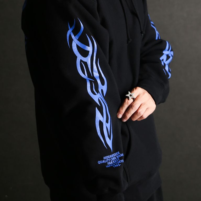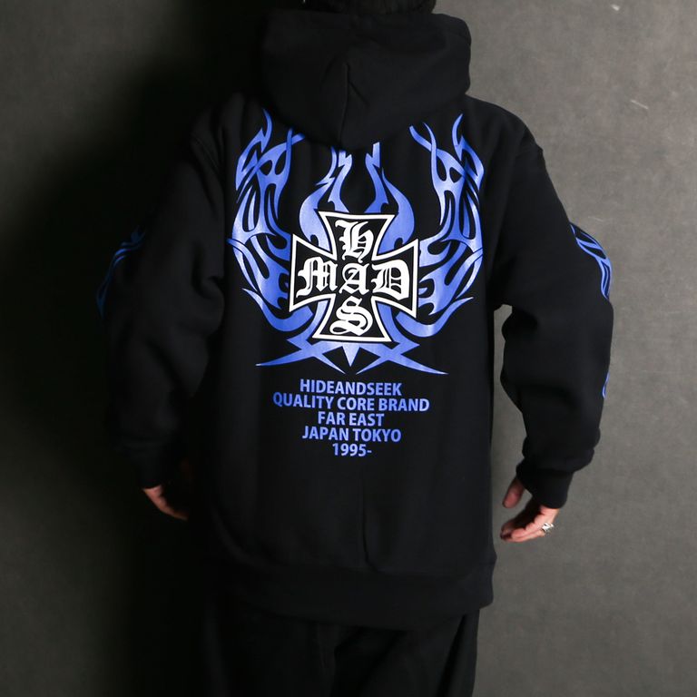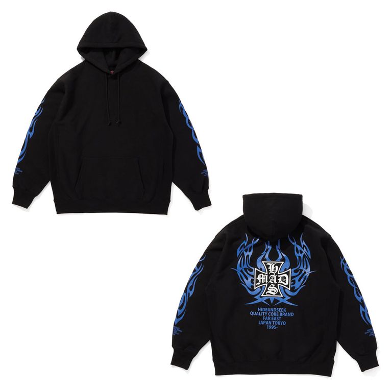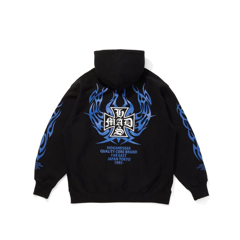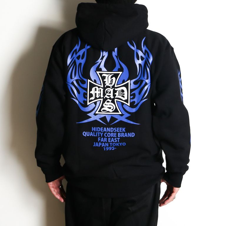 MAD Hooded Sweat Shirt - BLK × Blue / プルオーバーパーカー / HC-110825