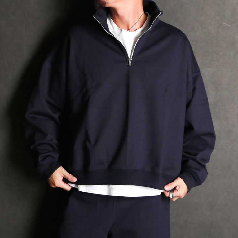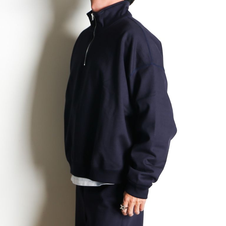 SHORT QUARTER ZIP PULLOVER - D.NAVY / オーガニックコットンヘビー吊裏毛 - ショートクォータージッププルオーバー / A25D03CS02C