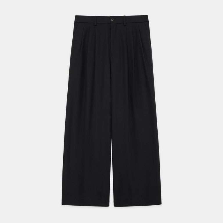 TRIPLE PLEATED WIDE TROUSERS - BLACK / オーガニックコットン サバイバルクロス - トリプルプリーテッドワイドトラウザーズ / A26A93PT03C