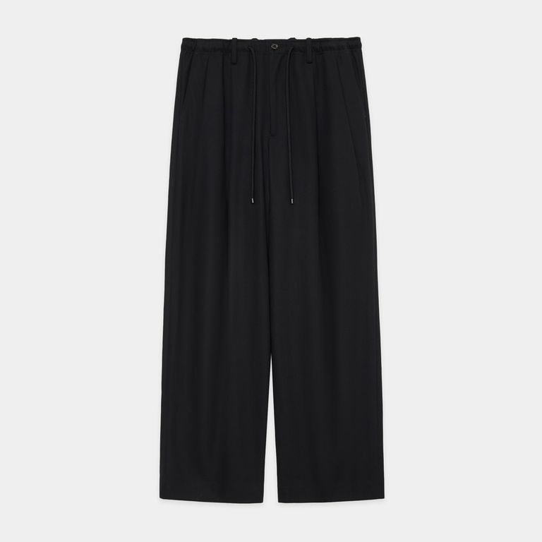 DOUBLE PLEATED EASY TROUSERS - BLACK / オーガニックコットン サバイバルクロス - ダブルプリーテッドワイドトラウザーズ / A26A93PT02C
