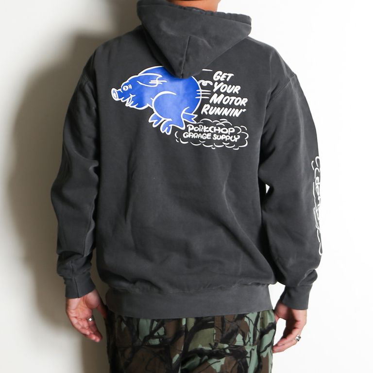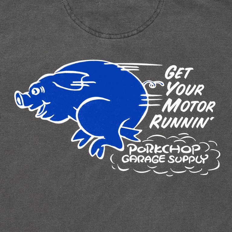 PORKCHOP GARAGE SUPPLYは、Valley Autoの米内氏とFusty Worksの杉原氏によるプロジェクトで、ガレージで使えるモノをコンセプトに展開しています。​ブランド名の「ポークチョップ」は、近所にあった養豚所が無くなったことと、チョップカルチャーが好きなことから命名されました。​豚をアイコンとしたグラフィックが特徴で、アメリカンテイスト漂う商品を展開しています。