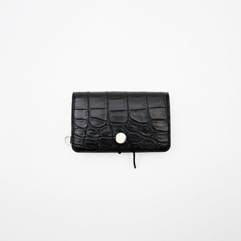 メゾンと提携し高品質なエキゾチックレザーを供給する仏 HCP社の下地を使用し、国内で仕上げたクロコダイルレザー、“CROCO(クロコ)”。いわゆる贅沢取りで裁断はせず、あくまでクロコダイルの全体の雰囲気や空気感を感じられるよう端から端まで余さず取り切るため、使用シーンを想像しながら、デザイナー自ら裁断を行なっています。