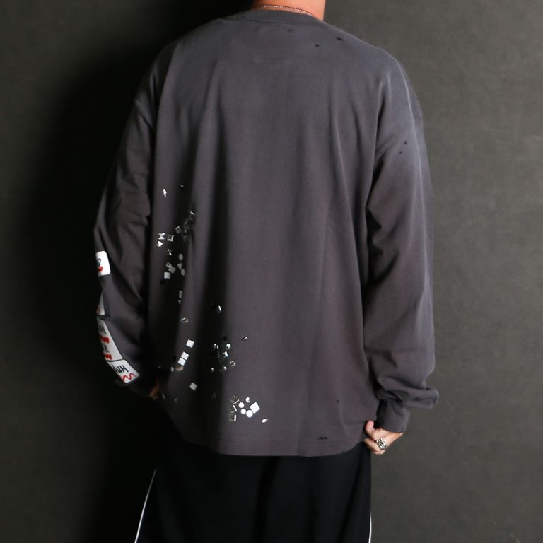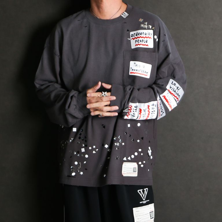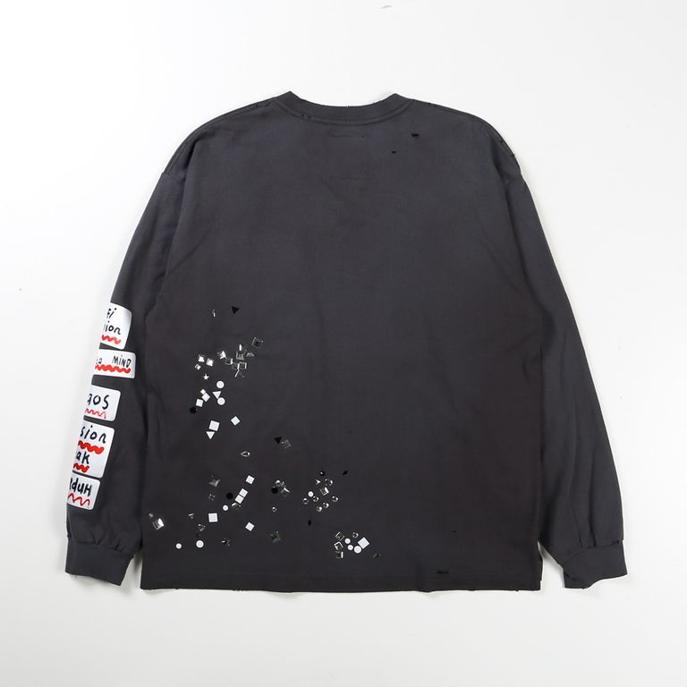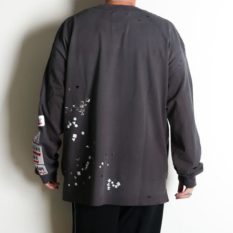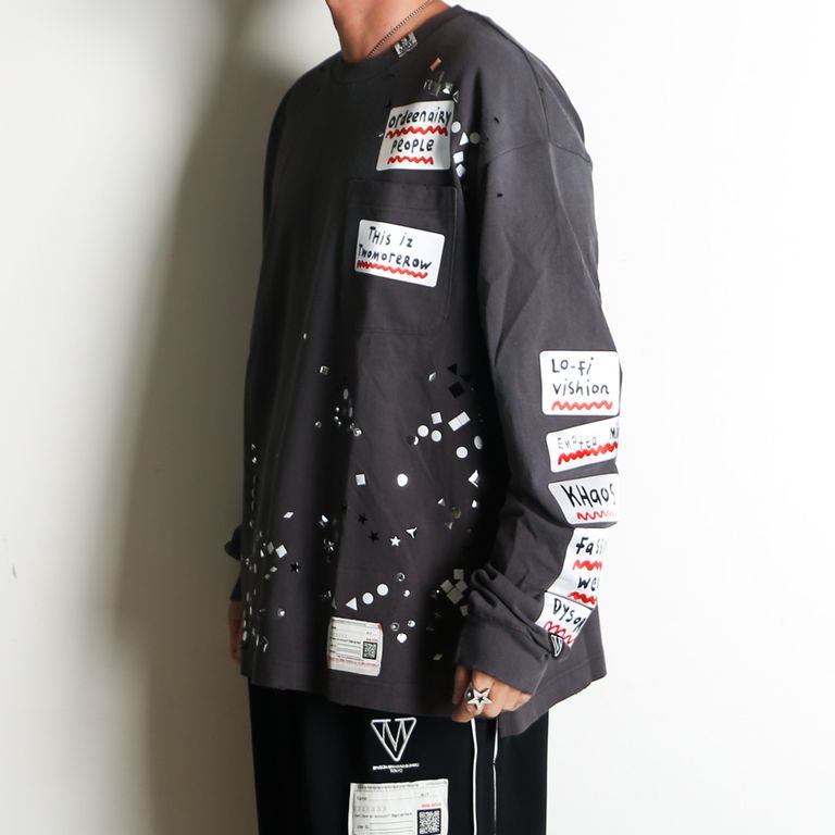 Embellished Sticker Long Sleeves Tee - BLACK / エンブリッシュド ステッカー ロングスリーブTシャツ / A16LT591