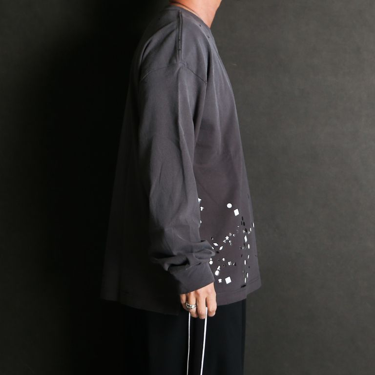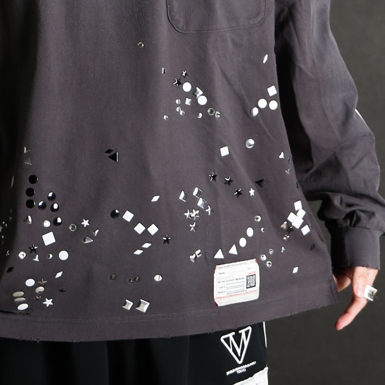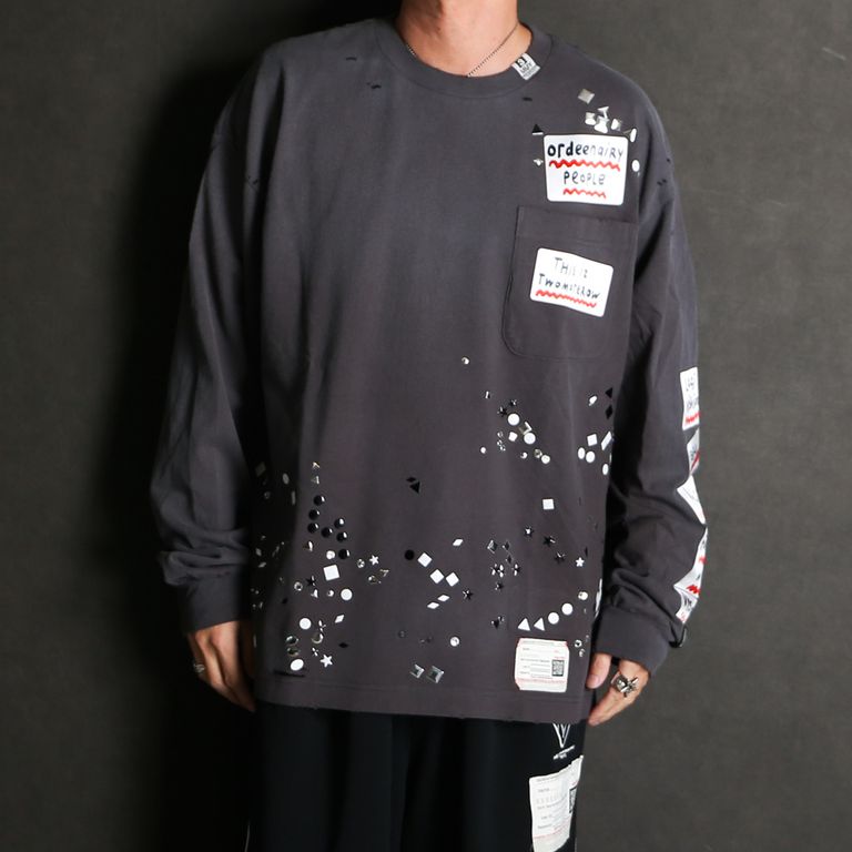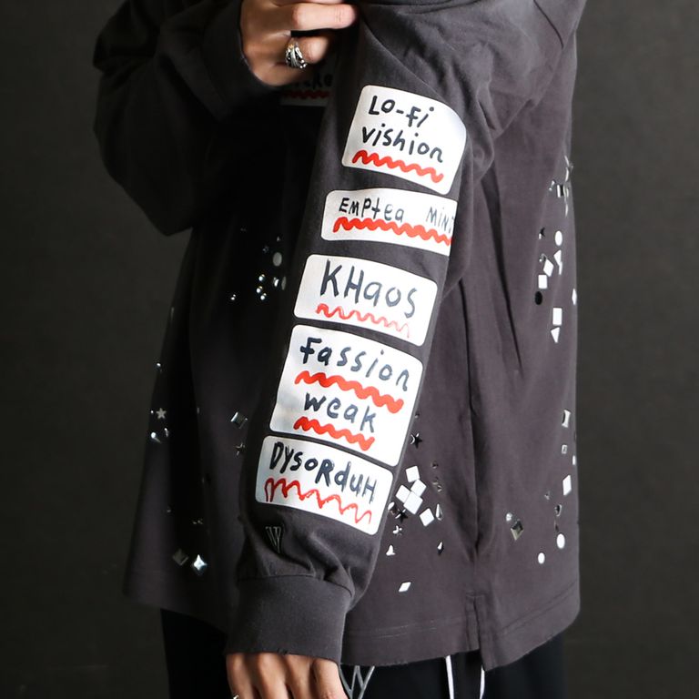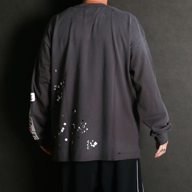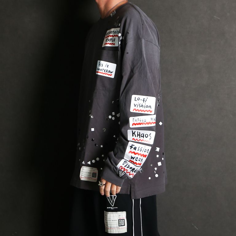 Embellished Sticker Long Sleeves Tee - BLACK / エンブリッシュド ステッカー ロングスリーブTシャツ / A16LT591