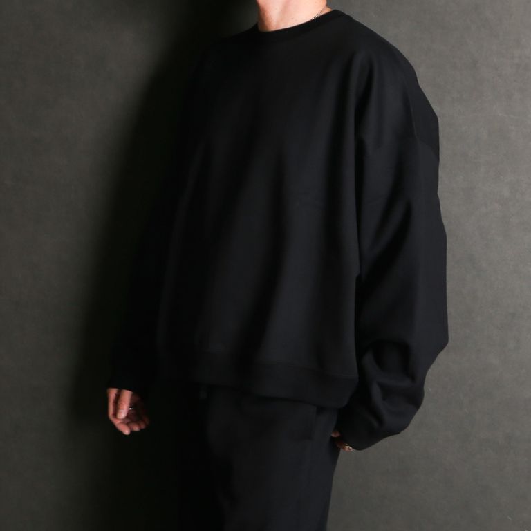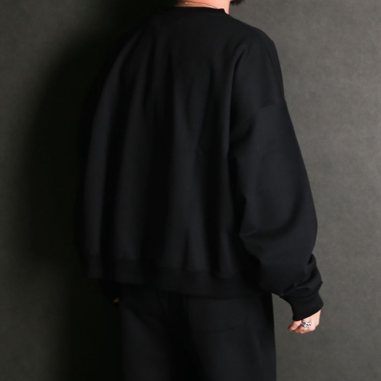 HUGE SHORT SWEAT - BLACK / オーガニックコットンヘビー吊裏毛 - ヒュージショートスウェット / A26A09CS02C