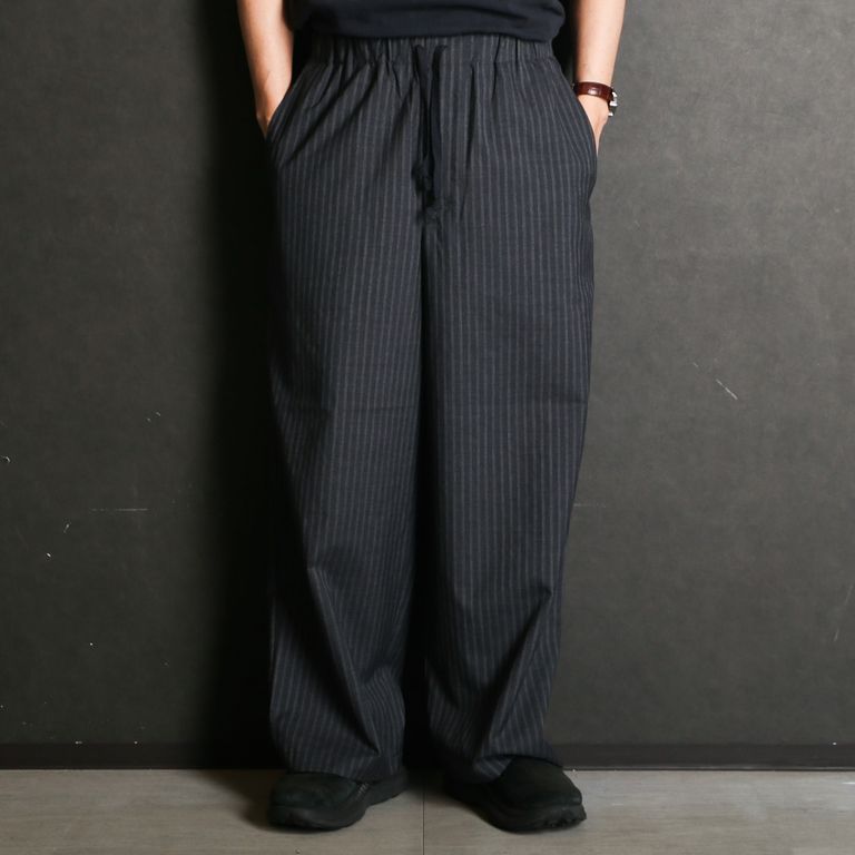 WIDE CYLINDER FIT EASY PANTS - GRAY STRIPE / 2/72 ウールトロピカルワッシャー - ワイドシリンダーフィット イージーパンツ / M26A11PT01C