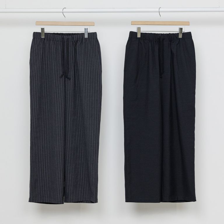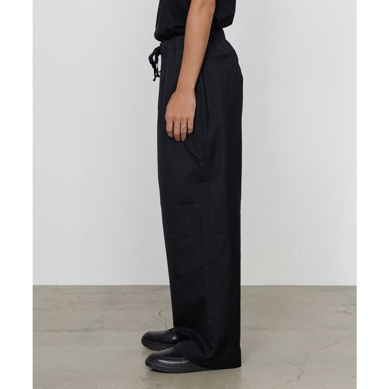 WIDE CYLINDER FIT EASY PANTS - CHANBRAY BLACK / 2/72 ウールトロピカルワッシャー - ワイドシリンダーフィット イージーパンツ / M26A11PT01C
