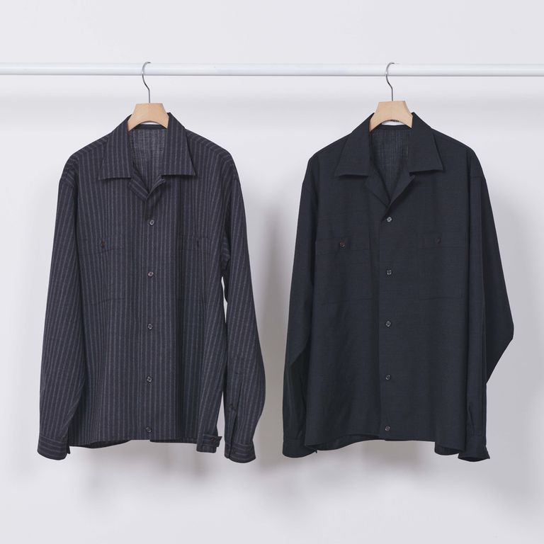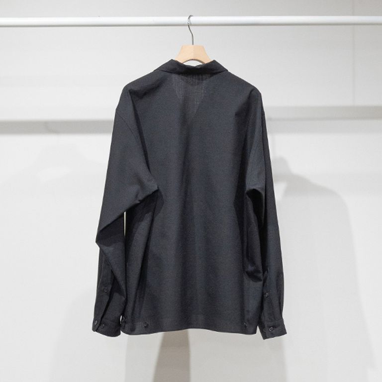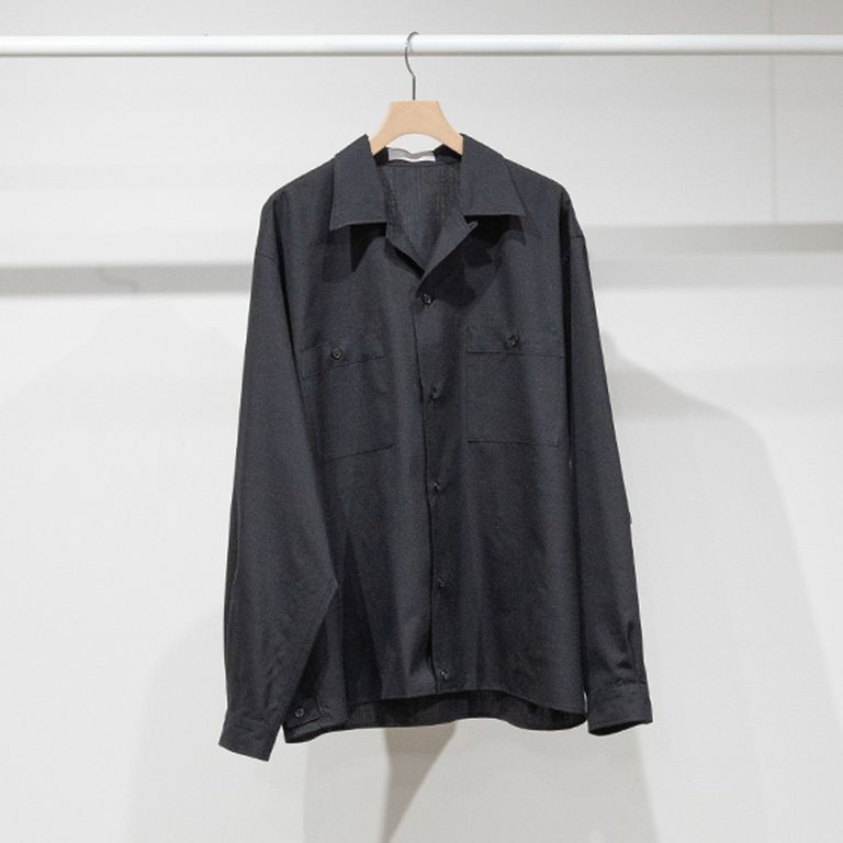 DOUBLE POCKET OPEN COLLAR SHIRT - CHAMBRAY BLACK / 2/72 ウールトロピカルワッシャー - ダブルポケット オープンカラーシャツ / M26A11SH01C