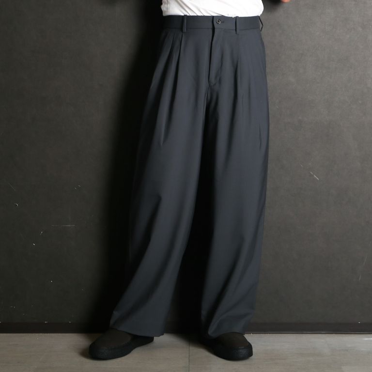 TRIPLE PLEATED WIDE TROUSERS - CHARCOAL / オーガニックウール2/80トロピカル - トリプルプリーテッドワイドトラウザーズ / A26A15PT03C