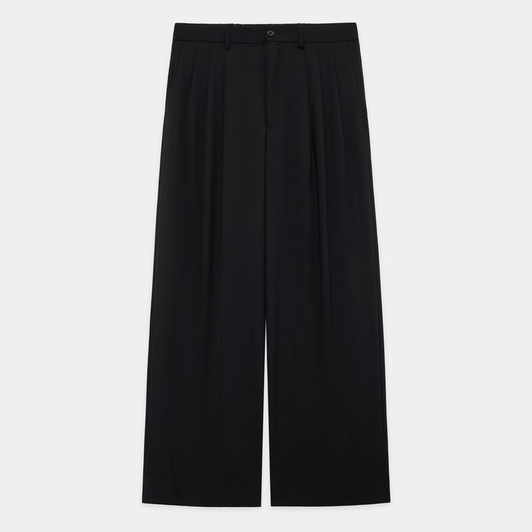 TRIPLE PLEATED WIDE TROUSERS - BLACK / オーガニックウール2/80トロピカル - トリプルプリーテッドワイドトラウザーズ / A26A15PT03C