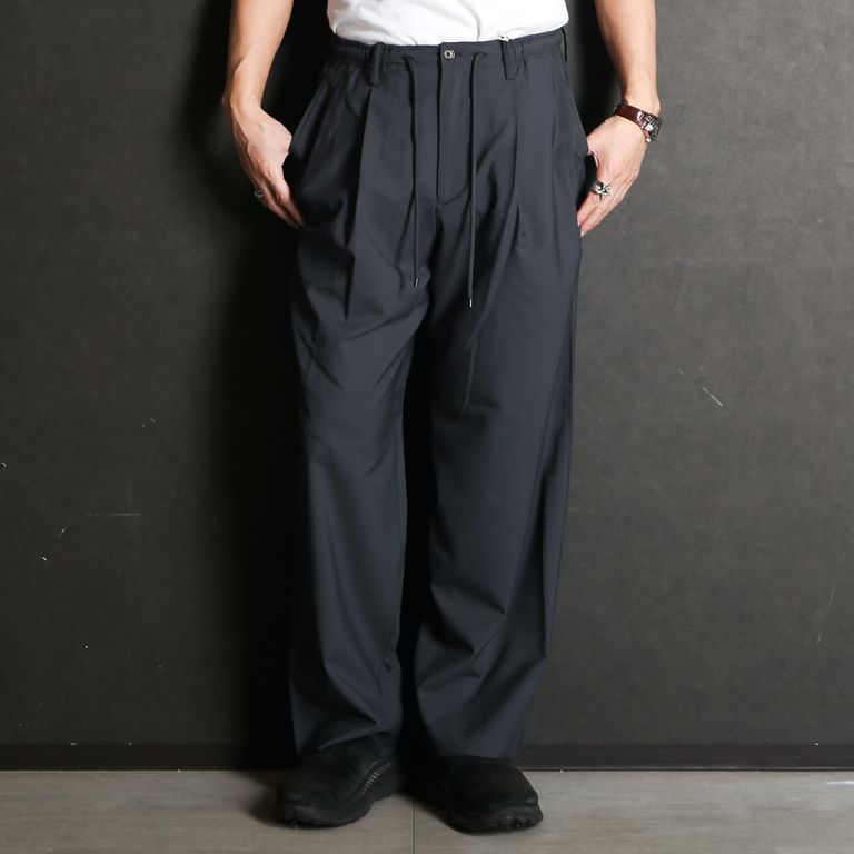 【ラスト1点-サイズ3】 DOUBLE PLEATED EASY TROUSERS - CHARCOAL / オーガニックウール2/80トロピカル - ダブルプリーテッドイージートラウザーズ / A26A15PT02C
