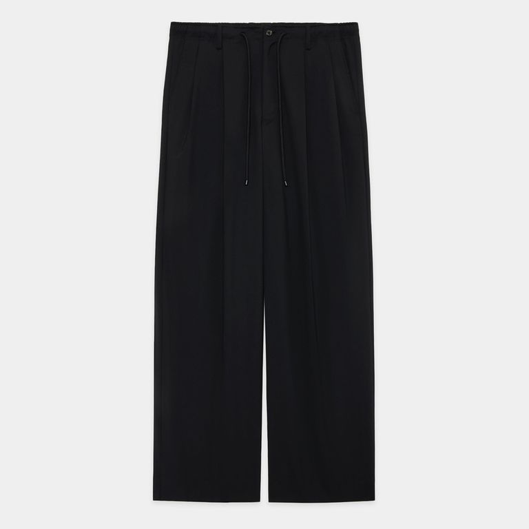 DOUBLE PLEATED EASY TROUSERS - BLACK / オーガニックウール2/80トロピカル - ダブルプリーテッドイージートラウザーズ / A26A15PT02C (2月入荷予定)