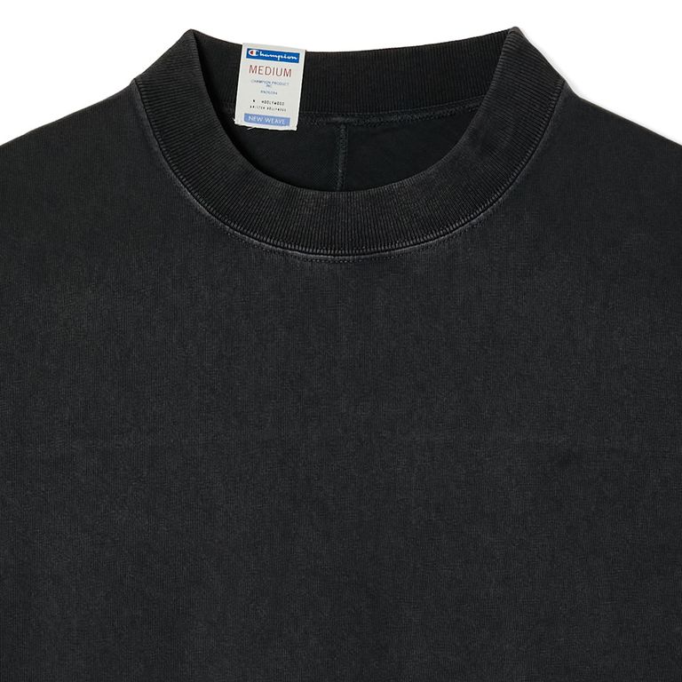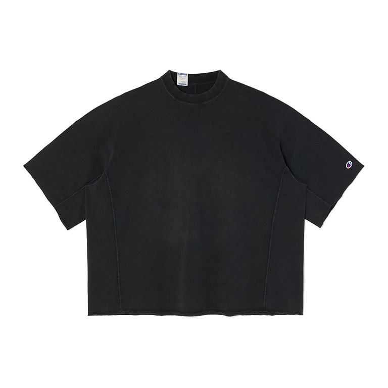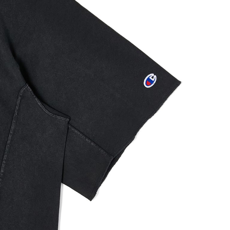 ・立体裁断により身体に沿ったシルエットを実現。端はロックミシン仕上げ。左袖にはチャンピオンの Cロゴワッペンを配置。ネック後ろには両ブランドのロゴを組み合わせた専用タグ付き。