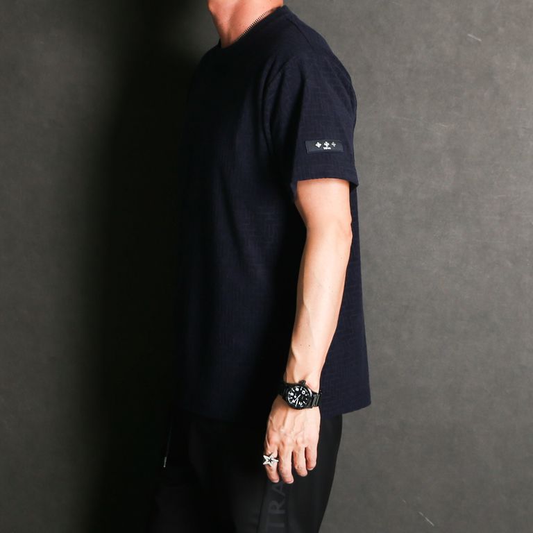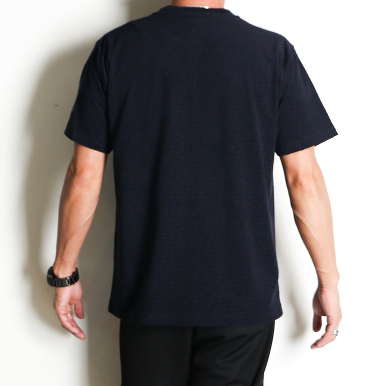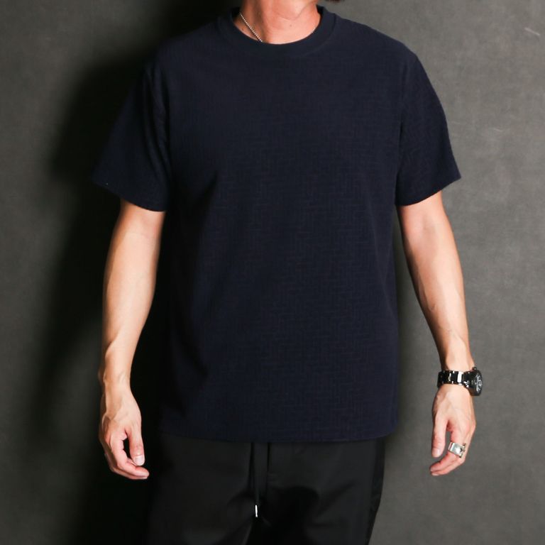 アイコニックなモノグラムパターンをジャカードで表現し、存在感のある表情に仕上げたTシャツ。