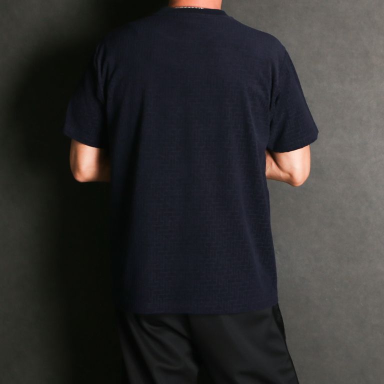 同色のモノグラムパターンが特徴のパイル素材Tシャツ