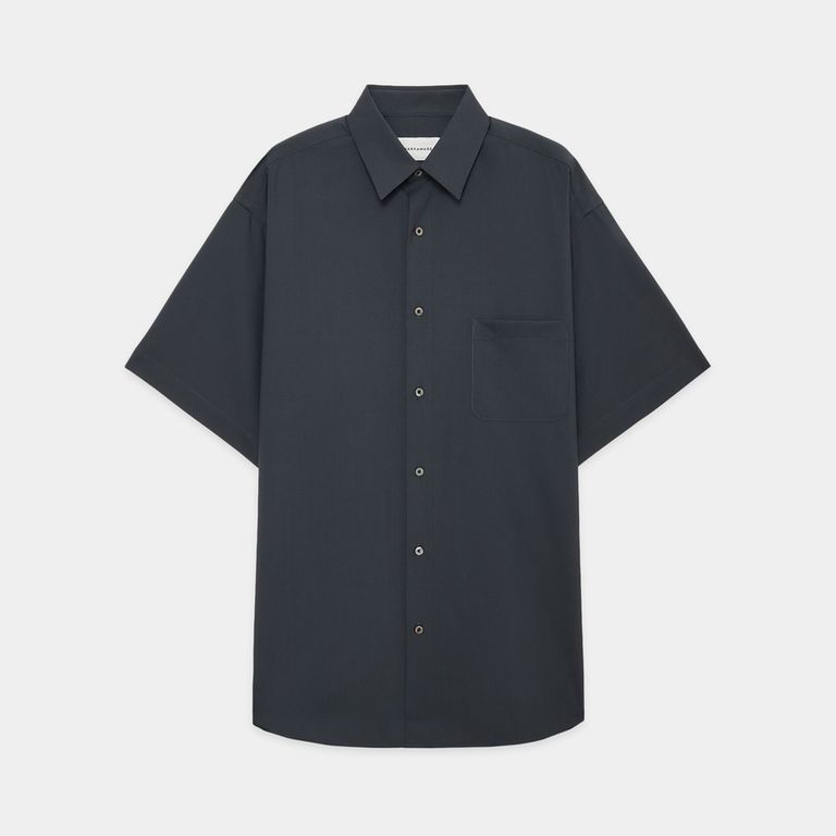 COMFORT FIT S/S SHIRT - CHARCOAL / オーガニックウール2/80トロピカル - コンフォートフィットS/Sシャツ / A26B04SH01B (4月下旬入荷予定)