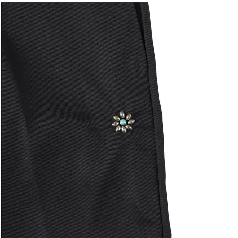 Dickiesの定番「874」に、フラワーモチーフ(ターコイズ)を打ち込んでいます。