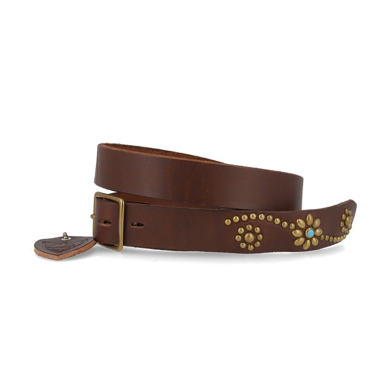 エンド部分にのみフラワーモチーフのスタッズを打ち込んだベルト