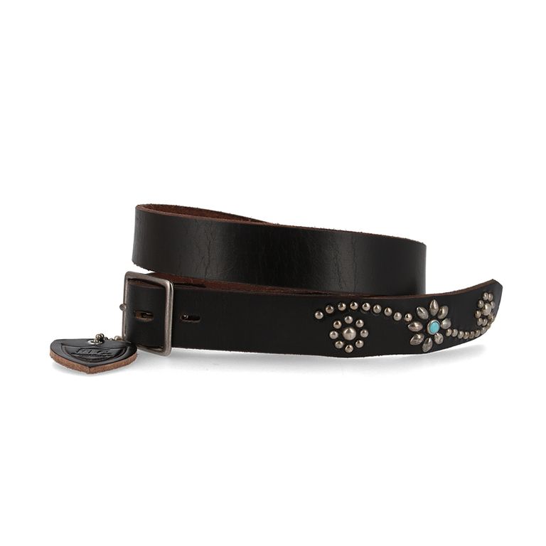 エンド部分にのみフラワーモチーフのスタッズを打ち込んだベルト