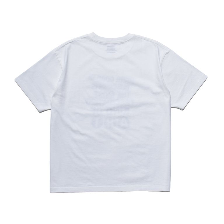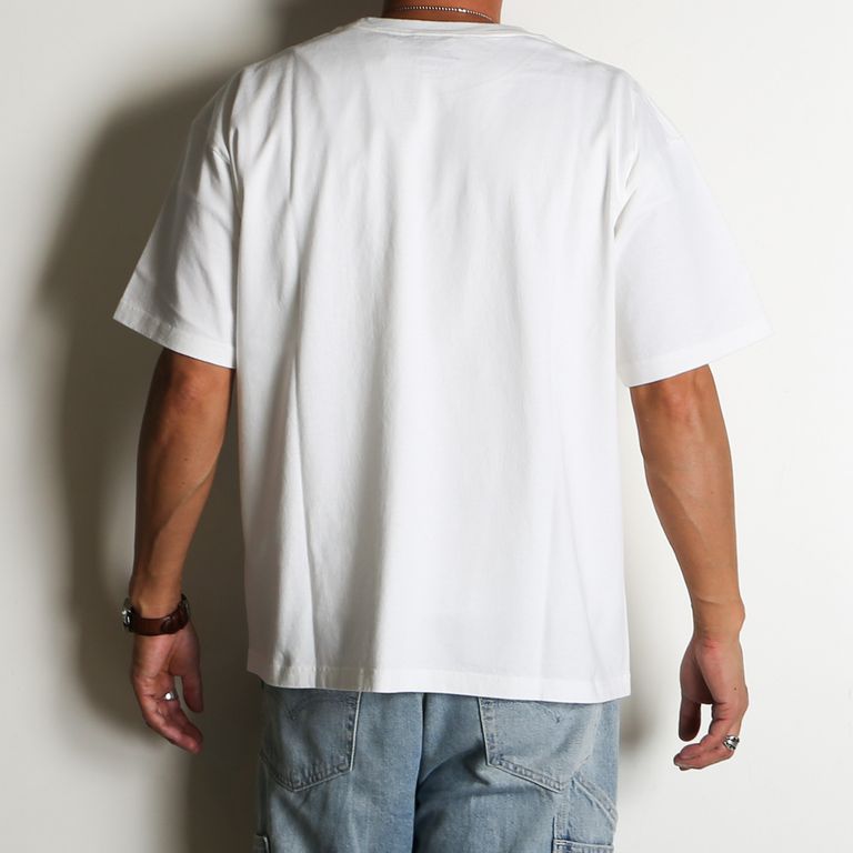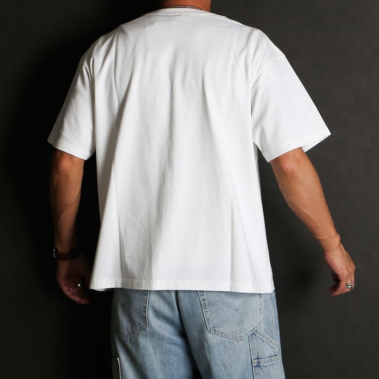 ホワイトは生地に馴染む染み込みプリントで着込むほどに風合いが深まり、ブラックは半ラバープリントで輪郭を際立たせグラフィックの存在感を強調。
