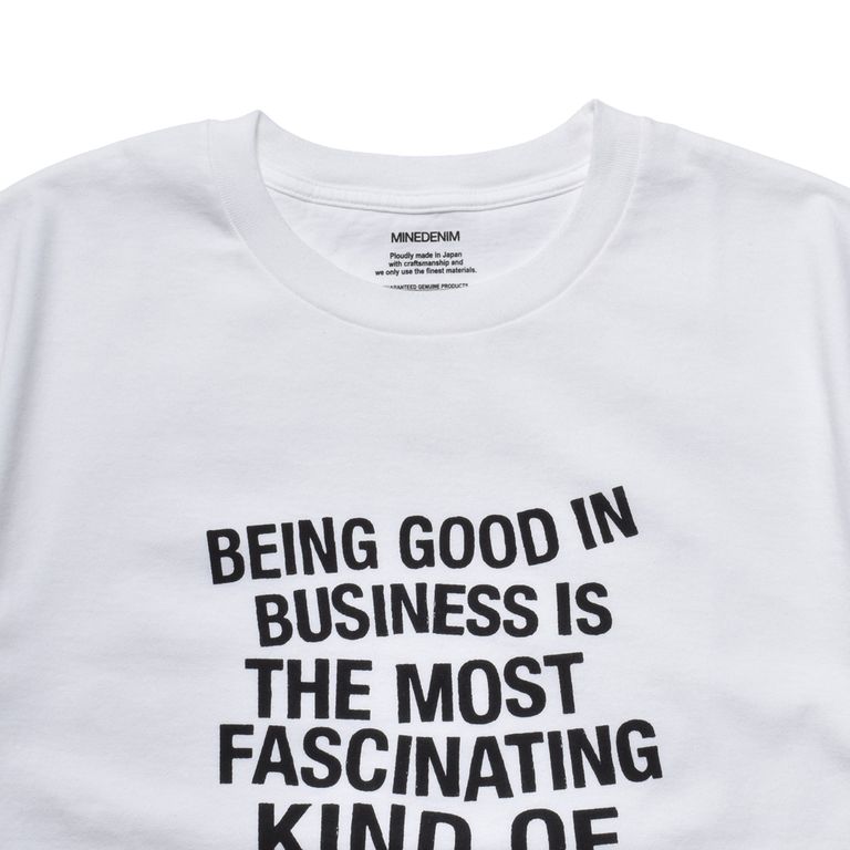 世界的に名を残すアーティストのフレーズを、MINEDENIMの感性で再構築したオリジナルグラフィックTシャツ。